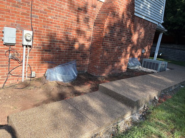 Removed Existing Grass. Installed weed block paper, new shrubs and new mulch.